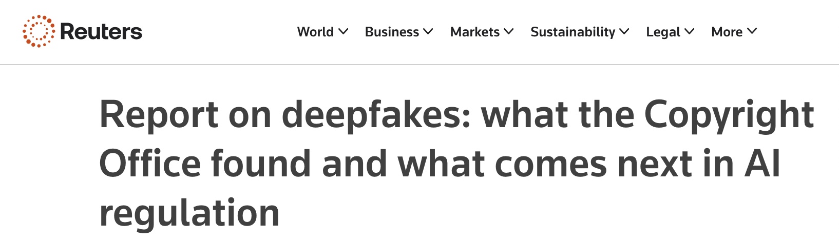 Submitted by LosAltosLaw on January 6, 2025 Reference Link https://www.reuters.com/legal/legalindustry/report-deepfakes-what-copyright-off… News Categories Copyright