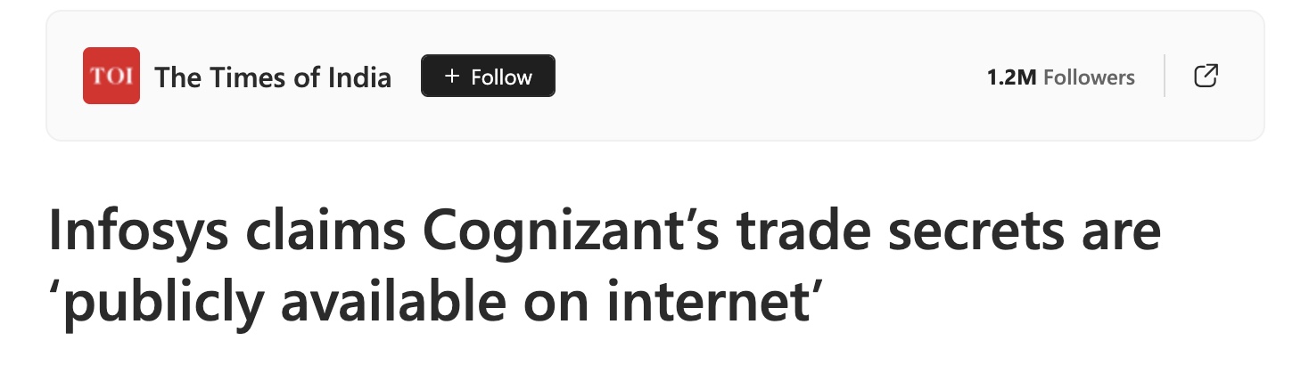 Submitted by LosAltosLaw on January 28, 2025 Reference Link https://www.msn.com/en-in/money/other/infosys-claims-cognizant-s-trade-secrets-…